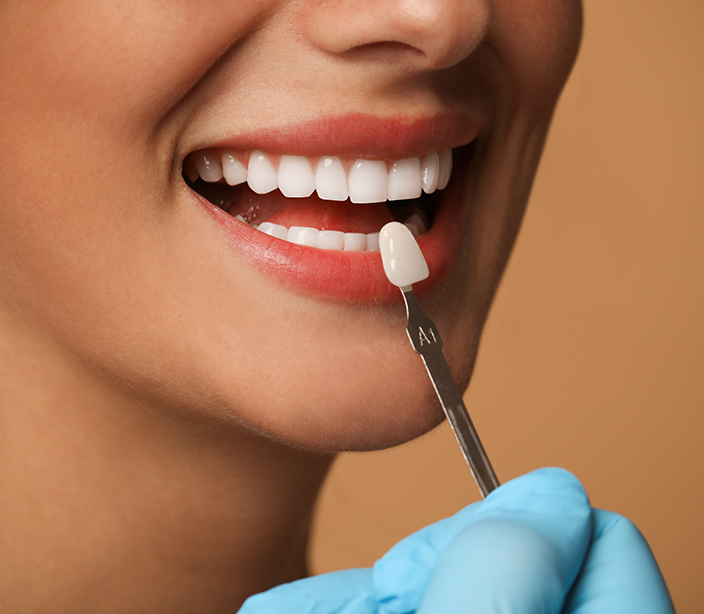 Dental veneers are thin layers of material placed on the front surface of teeth to adjust their appearance. They are often chosen by people who would like to change the shade, shape, size or alignment of one tooth or several teeth.